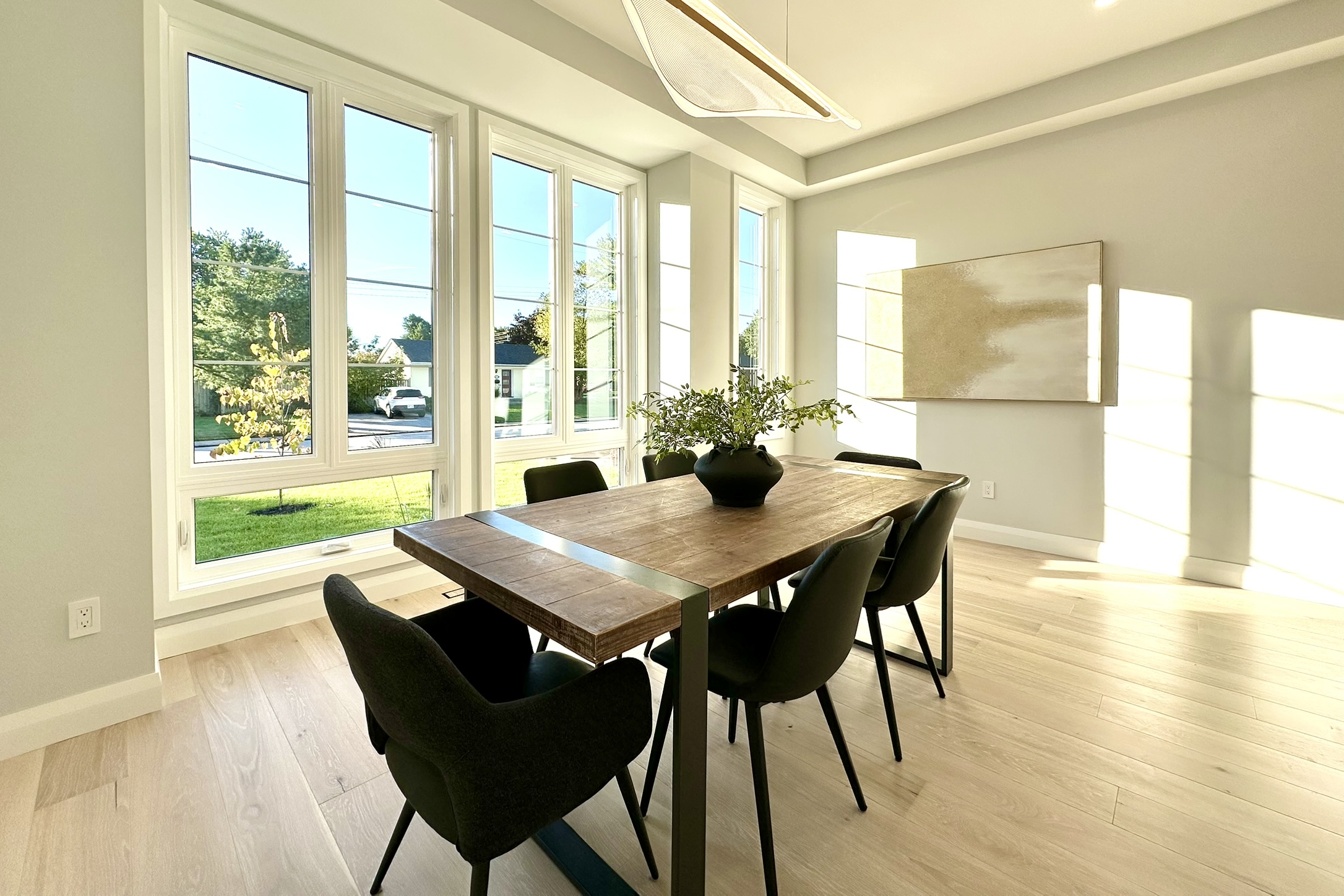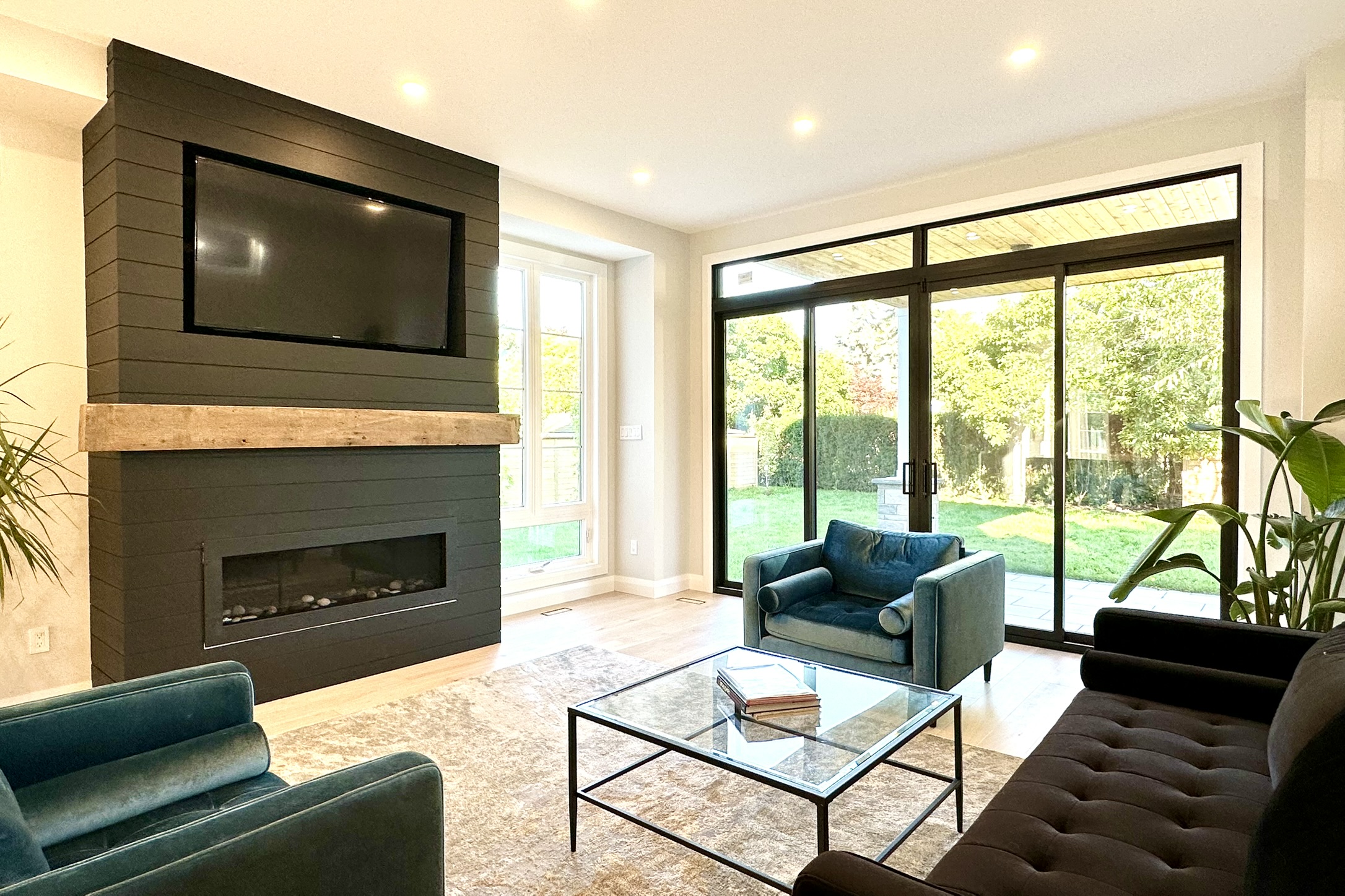 The open-concept floor plan emphasizes fluid movement and abundant natural light. High ceilings and large windows enhance the sense of space and connection to the surroundings. Custom finishes are integrated throughout, reflecting the client’s personal style.